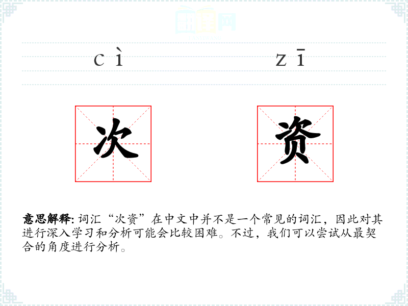 词汇“次资”在中文中并不是一个常见的词汇,因此对其进行深入学习和分析可能会比较困难。不过,我们可以尝试从最契合的角度进行分析。