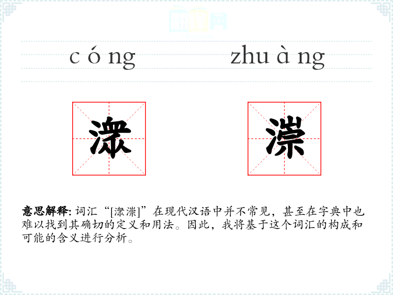 词汇“[潨漴]”在现代汉语中并不常见,甚至在字典中也难以找到其确切的定义和用法。因此,我将基于这个词汇的构成和可能的含义进行分析。
