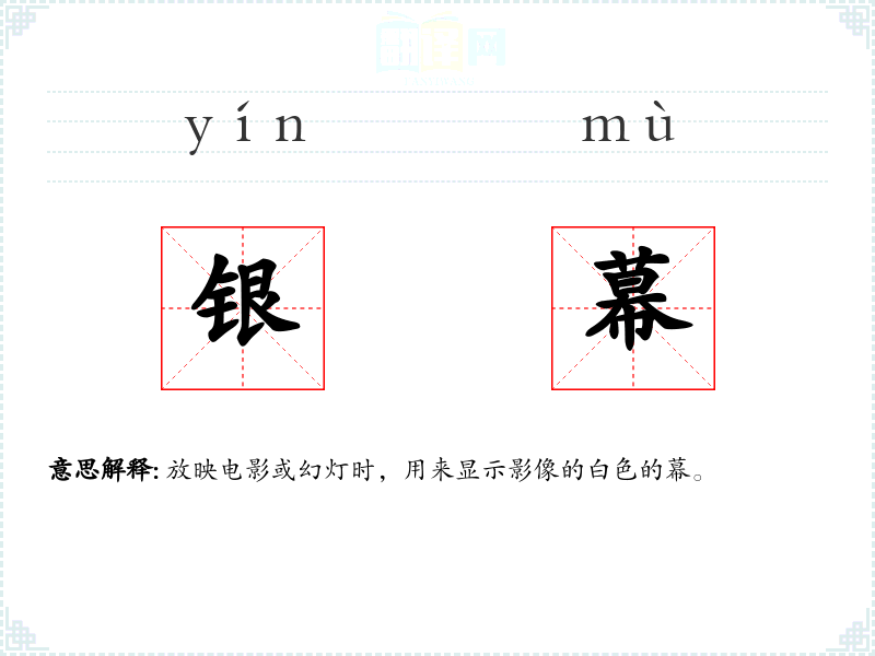 放映电影或幻灯时,用来显示影像的白色的幕。
