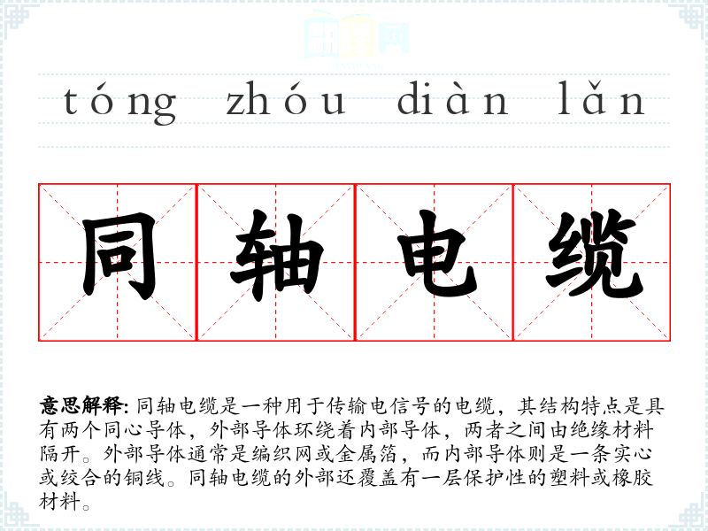 "同轴电缆"的意思解释、同轴电缆是什么意思由翻译网汉语词典查词提供。