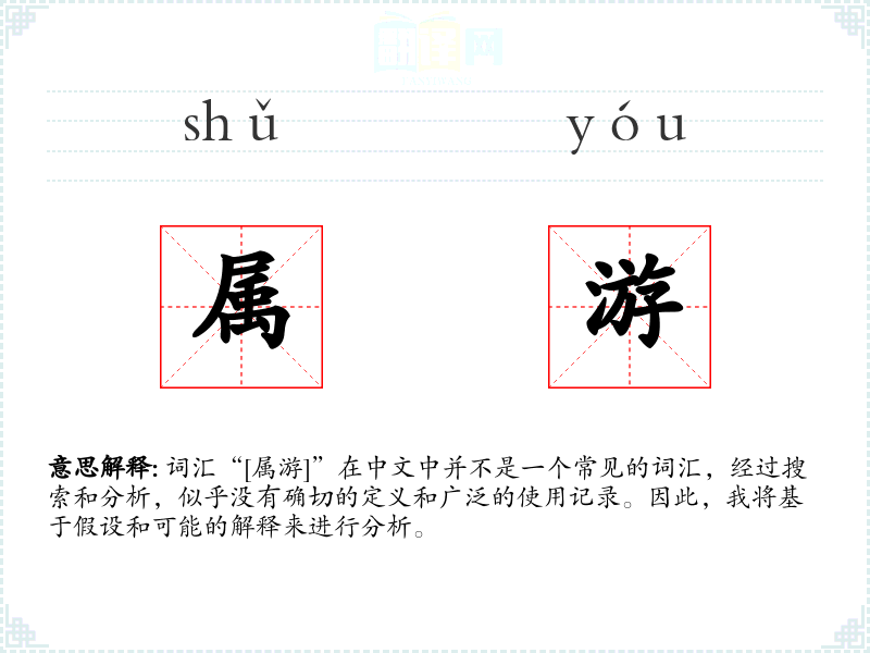 词汇“[属游]”在中文中并不是一个常见的词汇,经过搜索和分析,似乎没有确切的定义和广泛的使用记录。因此,我将基于假设和可能的解释来进行分析。