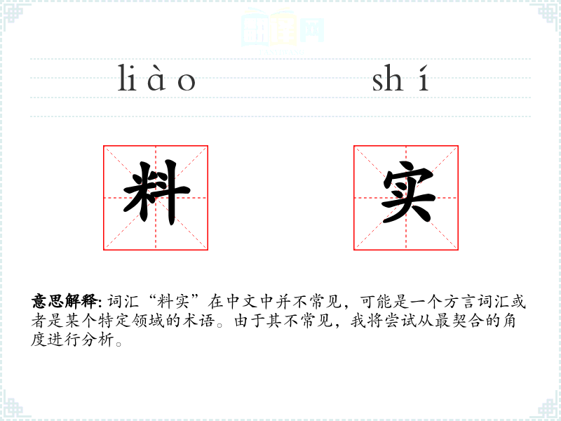 词汇“料实”在中文中并不常见,可能是一个方言词汇或者是某个特定领域的术语。由于其不常见,我将尝试从最契合的角度进行分析。