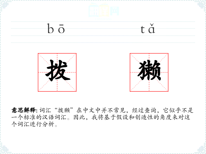 词汇“拨獭”在中文中并不常见,经过查询,它似乎不是一个标准的汉语词汇。因此,我将基于假设和创造性的角度来对这个词汇进行分析。