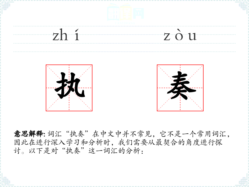 词汇“执奏”在中文中并不常见,它不是一个常用词汇,因此在进行深入学*和分析时,我们需要从最契合的角度进行探讨。以下是对“执奏”这一词汇的分析: