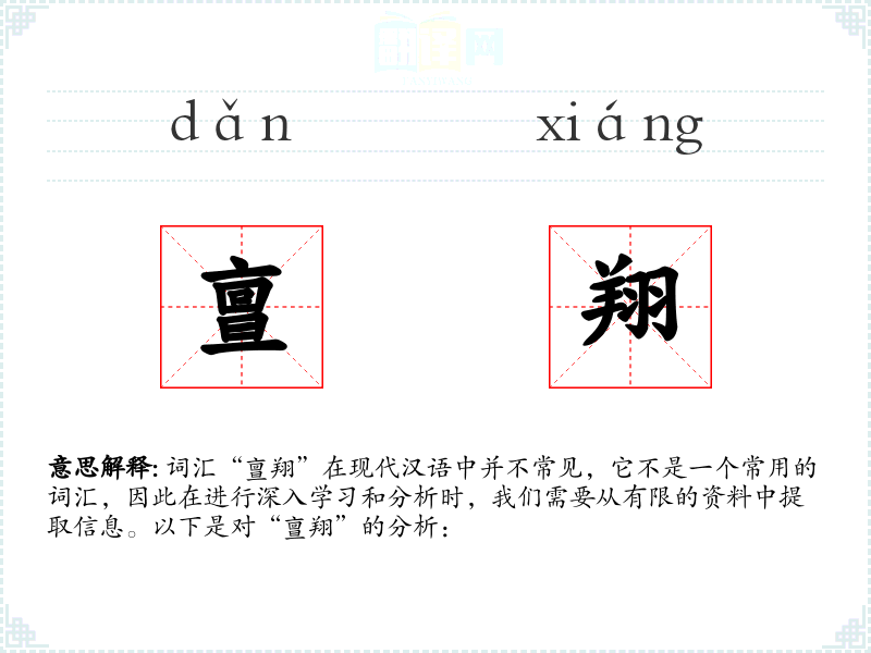 词汇“亶翔”在现代汉语中并不常见,它不是一个常用的词汇,因此在进行深入学习和分析时,我们需要从有限的资料中提取信息。以下是对“亶翔”的分析: