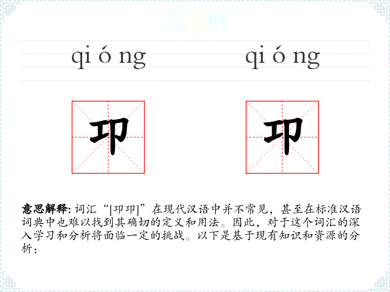 由于“[卭卭]”不是一个标准的汉语词汇,我们无法提供一个确切的字面意思和基本含义。它可能是一个方言词汇、古文词汇或者是打字错误。
