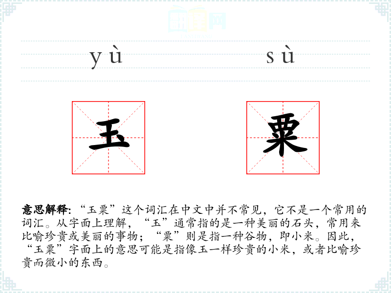 由于“玉粟”不是一个常用词汇,它的词源和历史演变并不明确。它可能是由“玉”和“粟”两个字组合而成的一个比喻性词汇,用来形容珍贵而微小的东西。