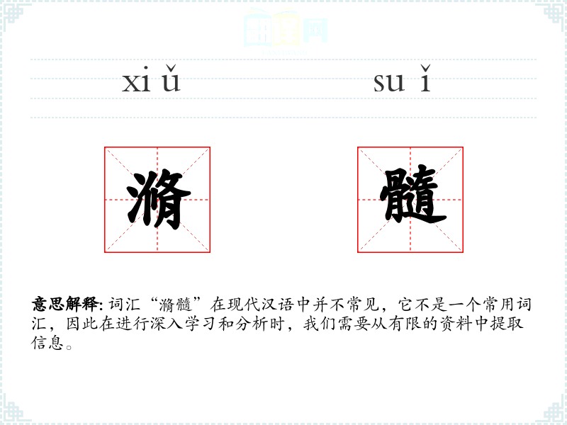 词汇“滫髓”在现代汉语中并不常见,它不是一个常用词汇,因此在进行深入学习和分析时,我们需要从有限的资料中提取信息。