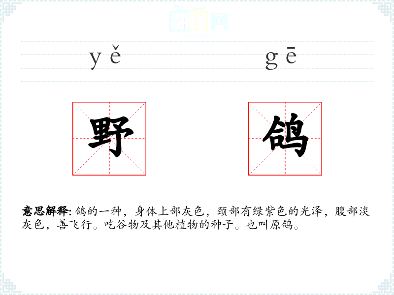 野鸽的分字解释
