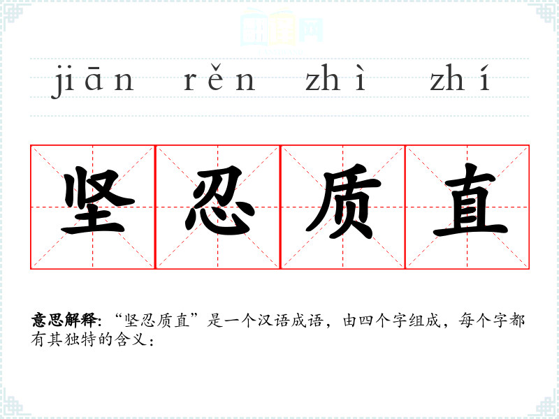 “坚忍质直”是一个汉语成语,由四个字组成,每个字都有其独特的含义: