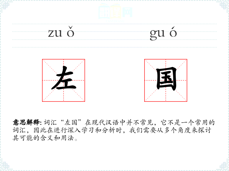 词汇“左国”在现代汉语中并不常见,它不是一个常用的词汇,因此在进行深入学习和分析时,我们需要从多个角度来探讨其可能的含义和用法。