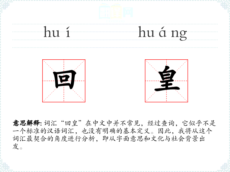 由于“回皇”不是一个标准词汇,我们可以尝试从字面意思来解释:
