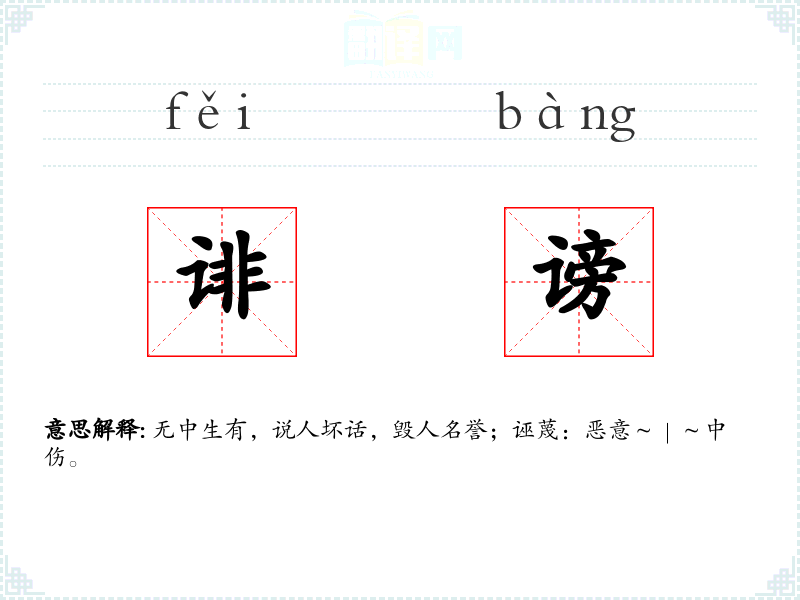,说人坏话,毁人名誉;诬蔑:恶意~|~中伤。
