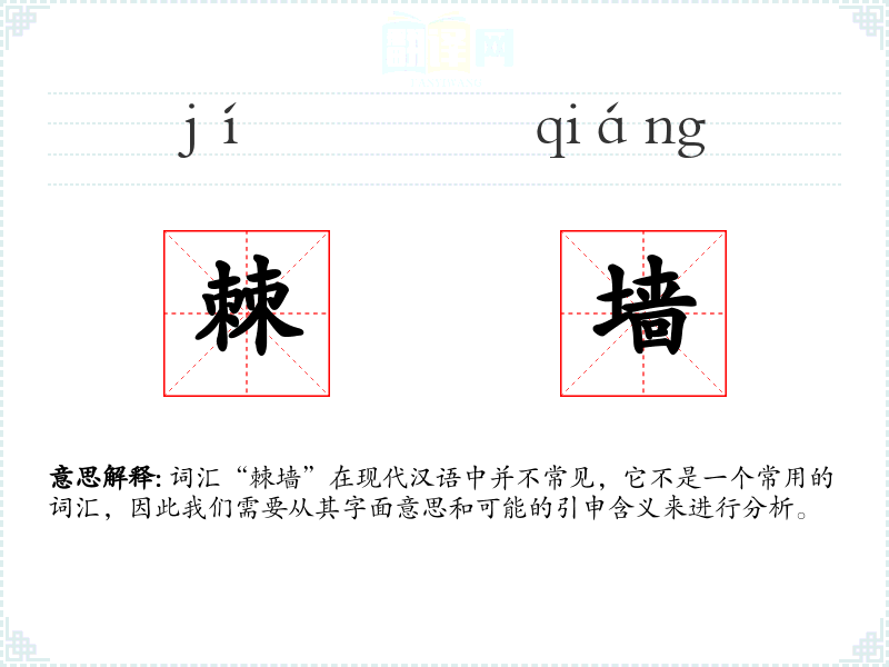 - 反义词:无(由于“棘墙”的特殊性,没有直接的反义词)
