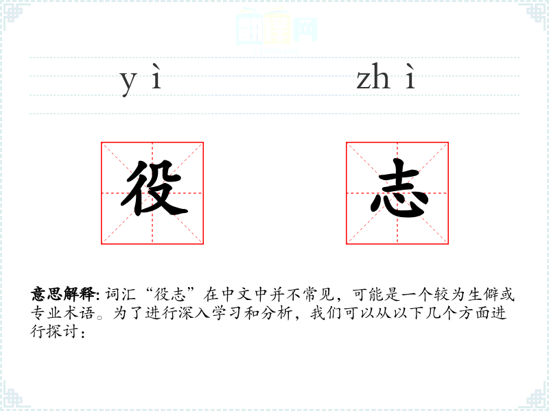 词汇“役志”在中文中并不常见,可能是一个较为生僻或专业术语。为了进行深入学习和分析,我们可以从以下几个方面进行探讨: