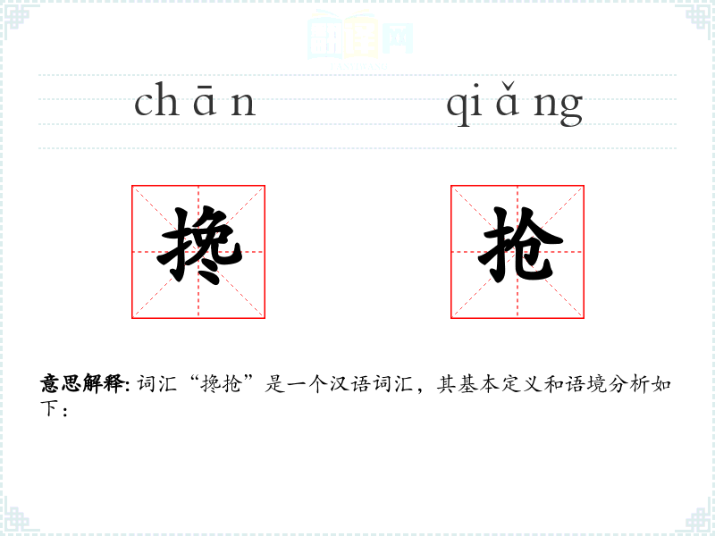 词汇“搀抢”是一个汉语词汇,其基本定义和语境分析如下: