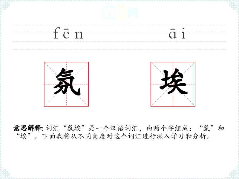 词汇“氛埃”是一个汉语词汇,由两个字组成:“氛”和“埃”。下面我将从不同角度对这个词汇进行深入学*和分析。