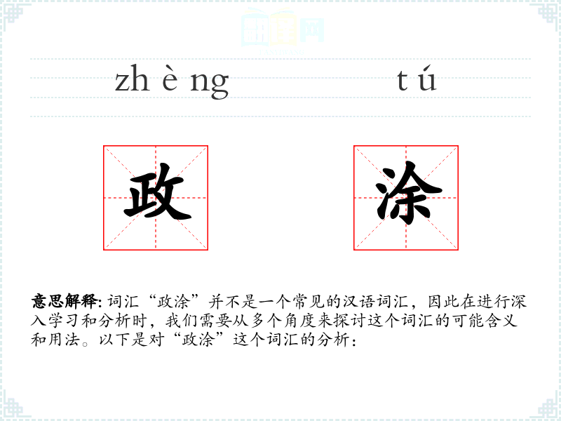 词汇“政涂”并不是一个常见的汉语词汇,因此在进行深入学习和分析时,我们需要从多个角度来探讨这个词汇的可能含义和用法。以下是对“政涂”这个词汇的分析: