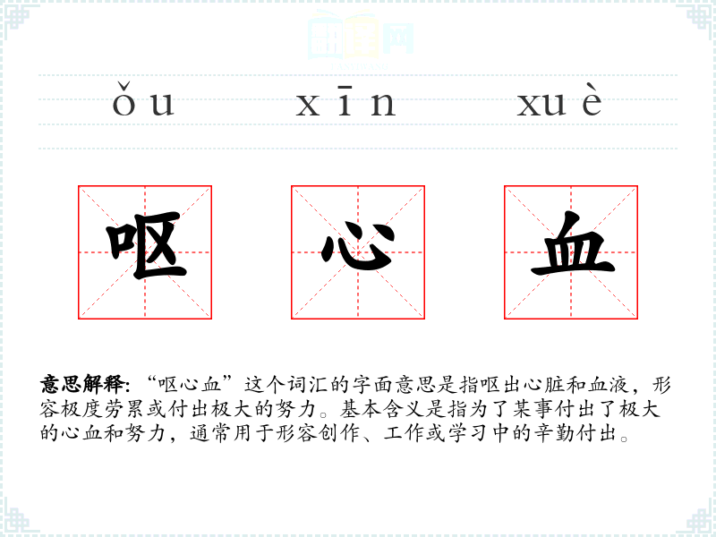 通过对“呕心血”这个词汇的深入学和分析,我更加理解了它在不同语境中的使用和含义。这个词汇不仅是对辛勤劳动的赞美,也是对坚持和付出的鼓励。在我的语言学和表达中,这个词汇提醒我要珍惜每一次努力和付出,因为它们都是通往成功的宝贵财富。