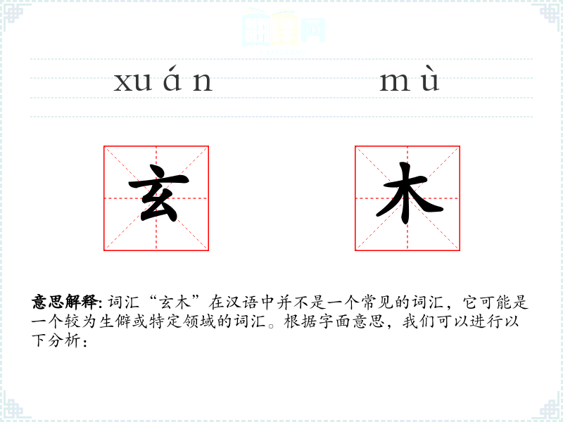词汇“玄木”在汉语中并不是一个常见的词汇,它可能是一个较为生僻或特定领域的词汇。根据字面意思,我们可以进行以下分析: