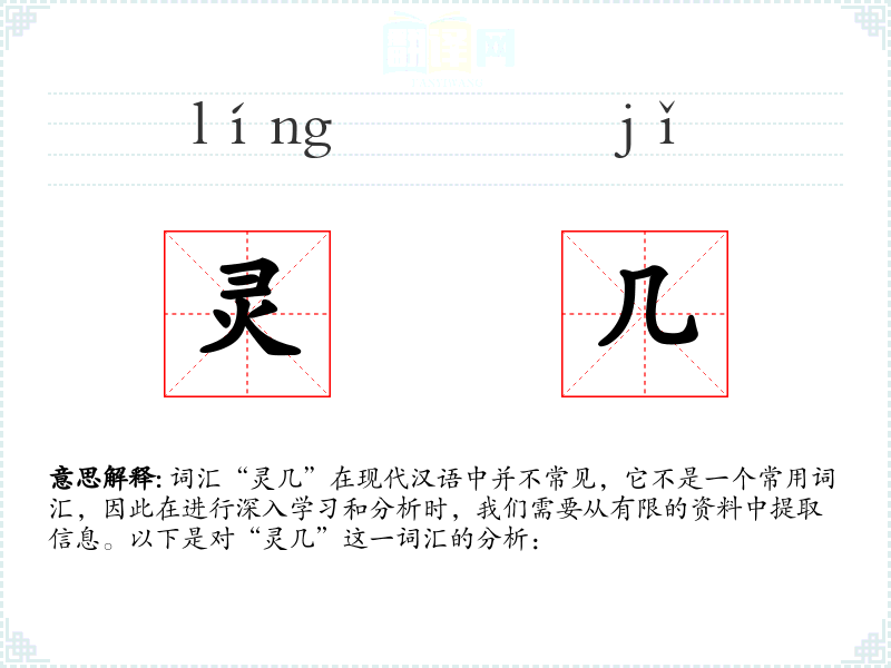 词汇“灵几”在现代汉语中并不常见,它不是一个常用词汇,因此在进行深入学习和分析时,我们需要从有限的资料中提取信息。以下是对“灵几”这一词汇的分析: