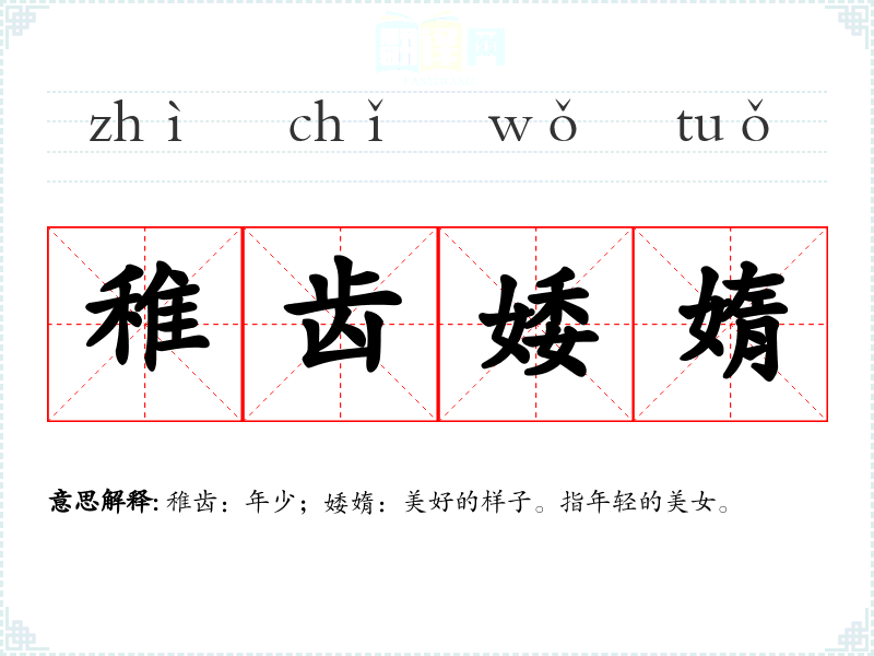 稚齿:年少;婑媠:美好的样子。指年轻的美女。