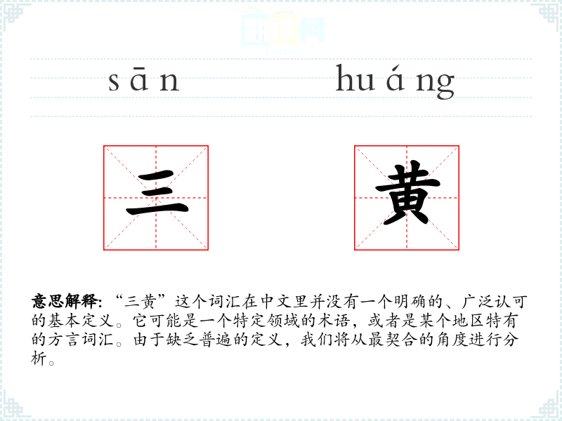 由于“三黄”不是一个常见的词汇,其词源和演变可能不为人所知,或者仅限于特定的小圈子。