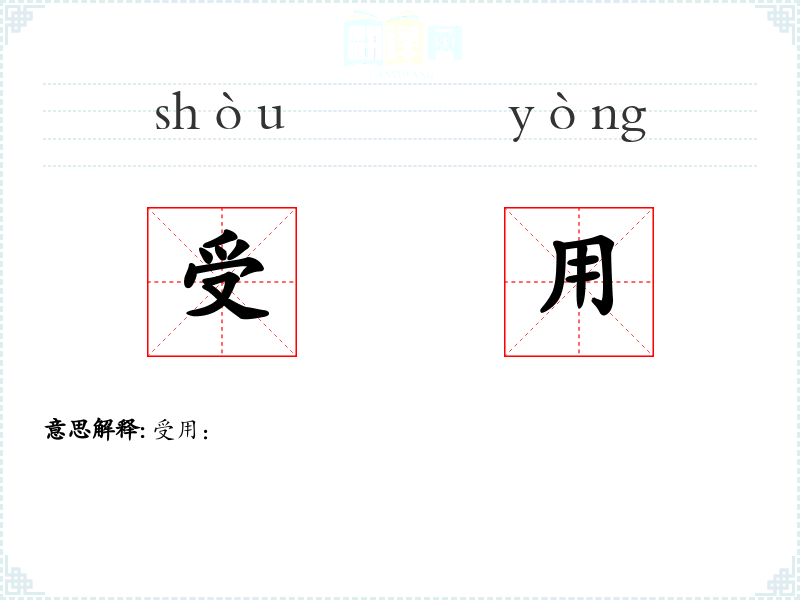 - 词源:“受用”一词源于古代汉语,由“受”和“用”两个字组成,意为接受并使用。
