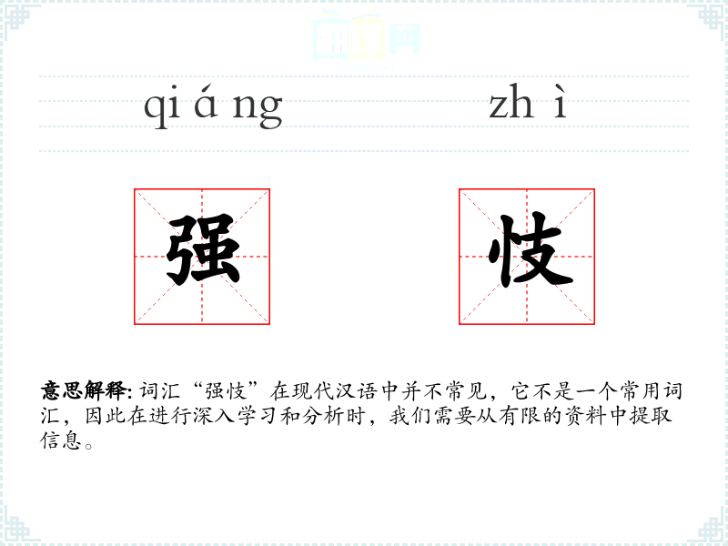 词汇“强忮”在现代汉语中并不常见,它不是一个常用词汇,因此在进行深入学*和分析时,我们需要从有限的资料中提取信息。