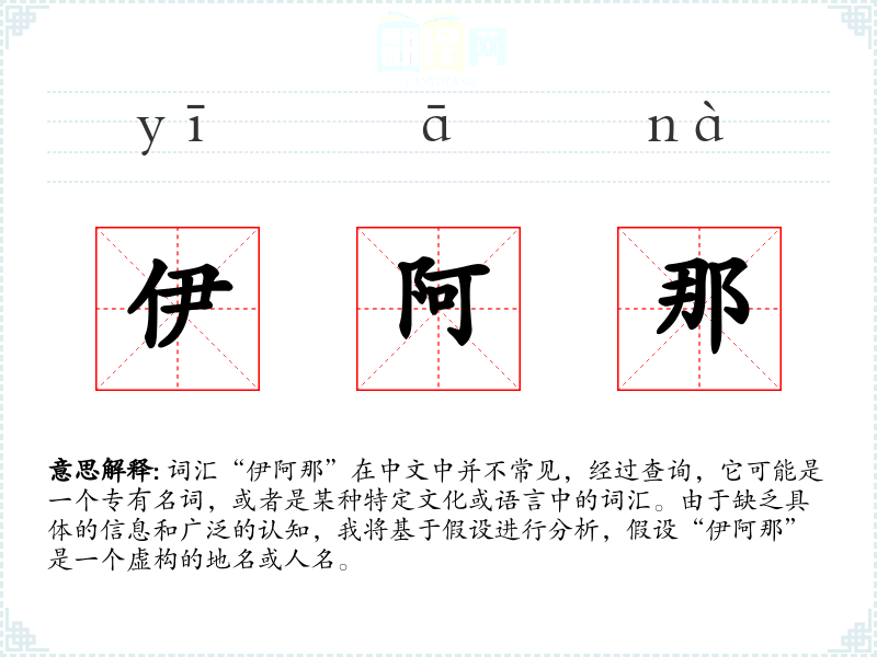 - 反义词:由于“伊阿那”的具体含义不明确,反义词难以确定。
