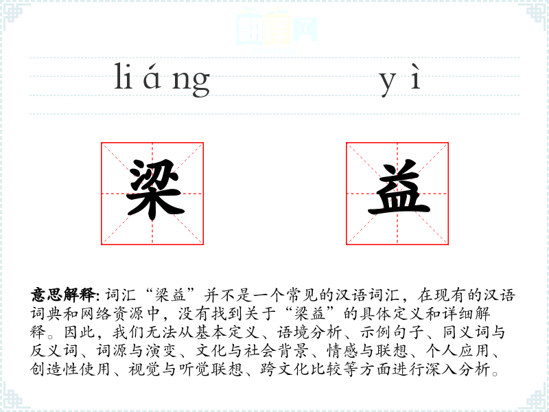 然而,如果我们从字面上理解“梁益”,可以推测它可能是由两个汉字组成的词汇: