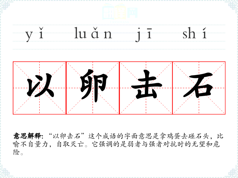 "以卵击石"的意思解释、以卵击石是什么意思由翻译网汉语词典查词提供。