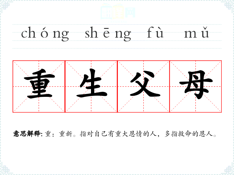 重:重新。指对自己有重大恩情的人,多指救命的恩人。