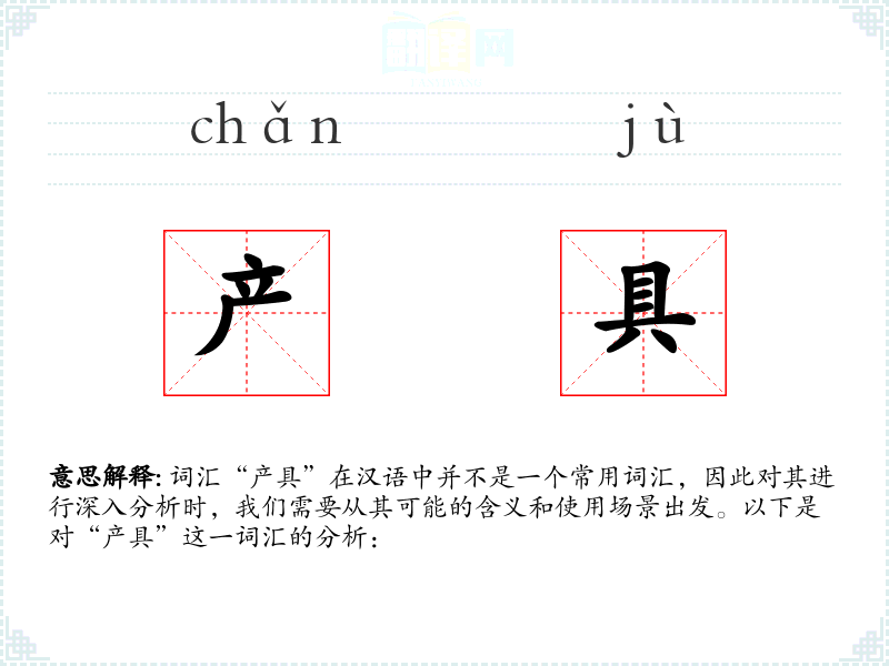 词汇“产具”在汉语中并不是一个常用词汇,因此对其进行深入分析时,我们需要从其可能的含义和使用场景出发。以下是对“产具”这一词汇的分析:
