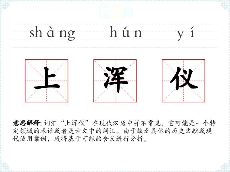 词汇“上浑仪”在现代汉语中并不常见,它可能是一个特定领域的术语或者是古文中的词汇。由于缺乏具体的历史文献或现代使用案例,我将基于可能的含义进行分析。