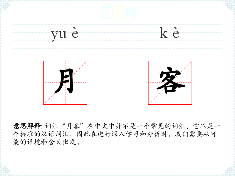 词汇“月客”在中文中并不是一个常见的词汇,它不是一个标准的汉语词汇,因此在进行深入学*和分析时,我们需要从可能的语境和含义出发。