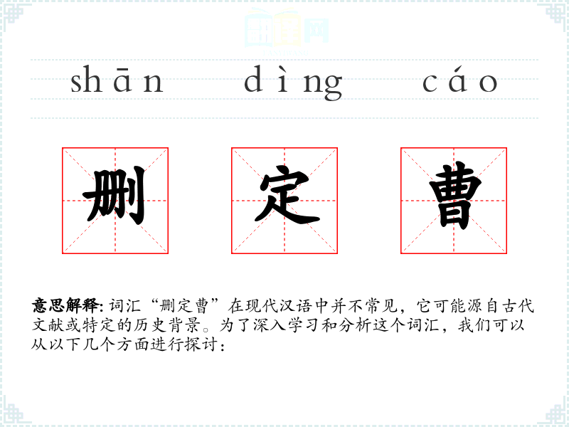词汇“删定曹”在现代汉语中并不常见,它可能源自古代文献或特定的历史背景。为了深入学*和分析这个词汇,我们可以从以下几个方面进行探讨: