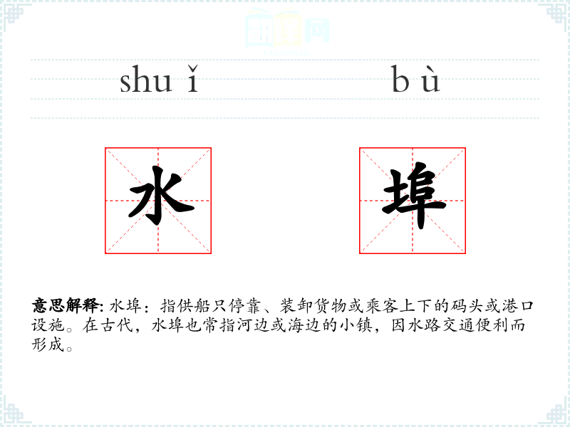 水埠这个词不仅是一个地理名词,更是一个承载着历史、文化和情感的词汇。在语言学*和表达中,了解和运用这样的词汇,可以丰富我们的语言表达,增加文化的深度和广度。