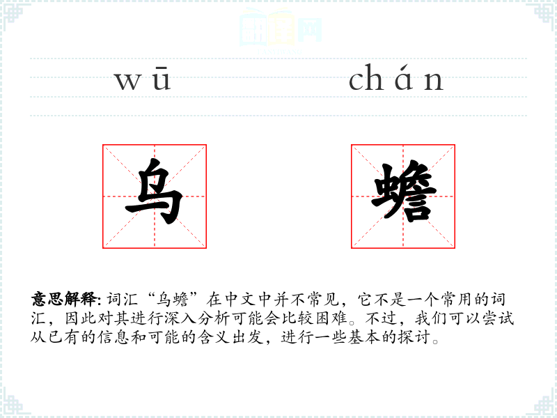 词汇“乌蟾”在中文中并不常见,它不是一个常用的词汇,因此对其进行深入分析可能会比较困难。不过,我们可以尝试从已有的信息和可能的含义出发,进行一些基本的探讨。