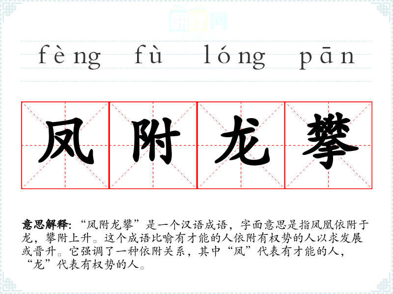 “凤附龙攀”这个成语深刻地揭示了社会中权力和依附关系的复杂性。在语言学*和表达中,理解这样的成语有助于我们更好地把握和分析社会现象,同时也提醒我们在追求个人目标时要保持道德和原则。