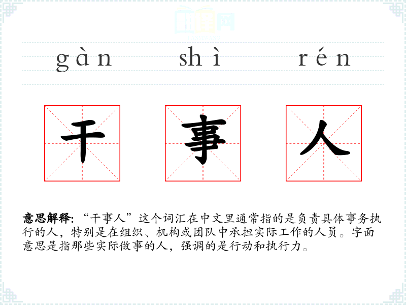"干事人"的意思解释、干事人是什么意思由翻译网汉语词典查词提供。