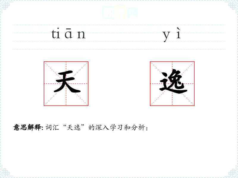 通过对“天逸”的深入分析,我更加理解了这个词所蕴含的自由和超脱的意境。在语言学*和表达中,掌握这样的词汇能够丰富我的表达方式,让我能够更准确地传达我对自由和美好生活的向往。