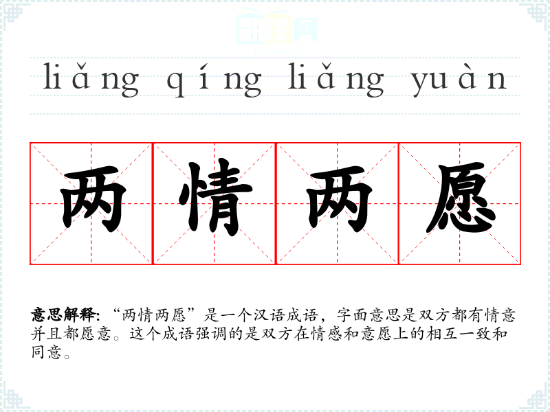 “两情两愿”这个成语在汉语中是一个非常有用的表达,它不仅在情感关系中使用,也可以广泛应用于各种合作和共识的场合。了解和掌握这个词汇,对于提升语言表达的准确性和丰富性非常重要。