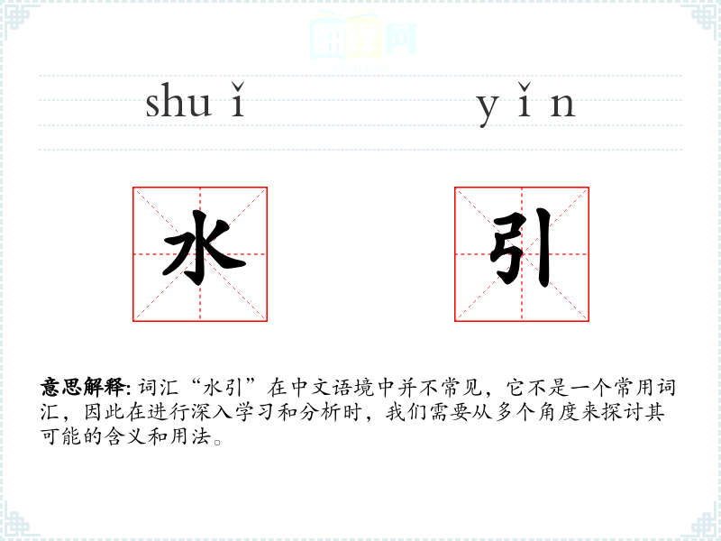 由于“水引”不是一个常用词汇,它在不同的语境下可能会有不同的含义。在水利工程领域,它可能指的是设计和管理水流的方法。在文学作品中,它可能被用来比喻性地描述某种引导或影响的过程。