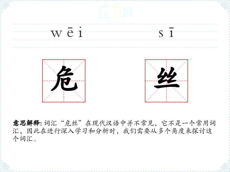 在古代文化中,“危丝”可能用来形容国家、社会或个人的脆弱状态,但在现代社会中,这个词的使用场景非常有限。