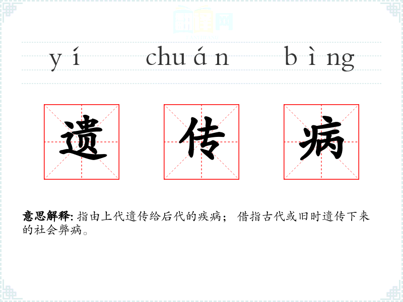 "遗传病"的意思解释、遗传病是什么意思由翻译网汉语词典查词提供。