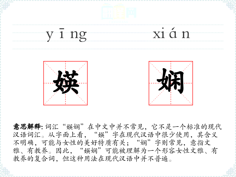 - 理解:“媖娴”是一个具有古典色彩的词汇,可能用于描述女性的文雅和高贵。