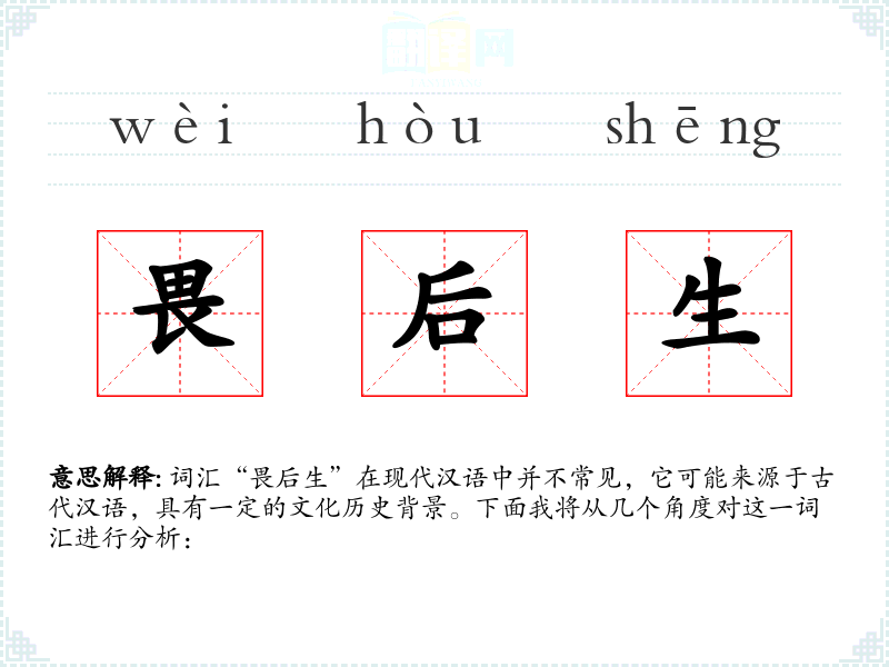 词汇“畏后生”在现代汉语中并不常见,它可能来源于古代汉语,具有一定的文化历史背景。下面我将从几个角度对这一词汇进行分析: