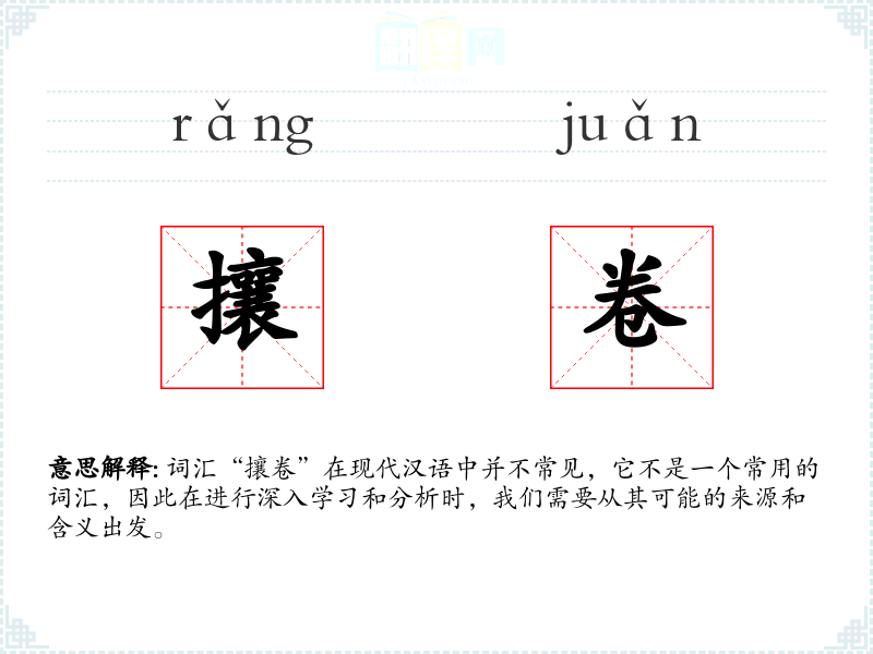词汇“攘卷”在现代汉语中并不常见,它不是一个常用的词汇,因此在进行深入学习和分析时,我们需要从其可能的来源和含义出发。