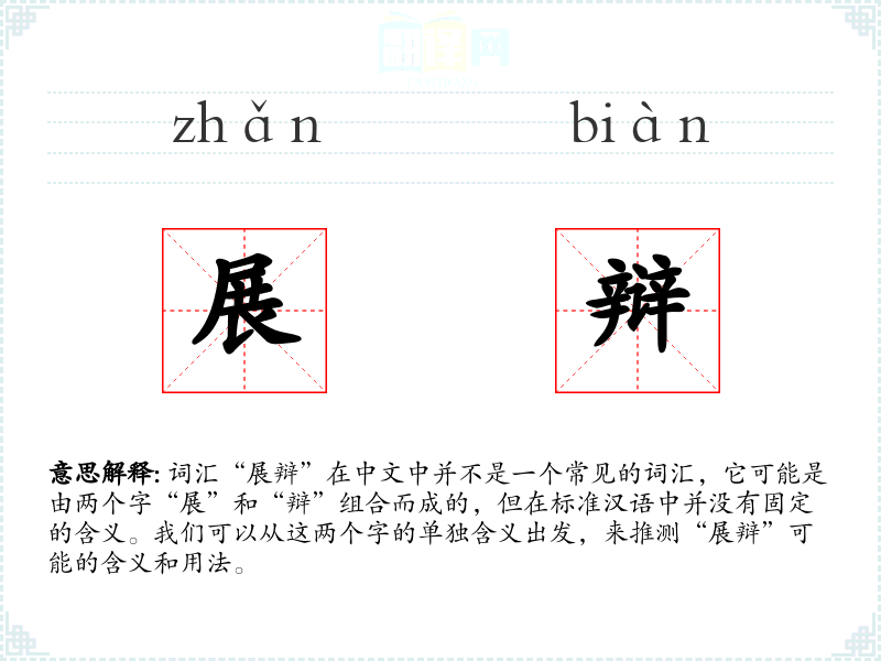 词汇“展辩”在中文中并不是一个常见的词汇,它可能是由两个字“展”和“辩”组合而成的,但在标准汉语中并没有固定的含义。我们可以从这两个字的单独含义出发,来推测“展辩”可能的含义和用法。